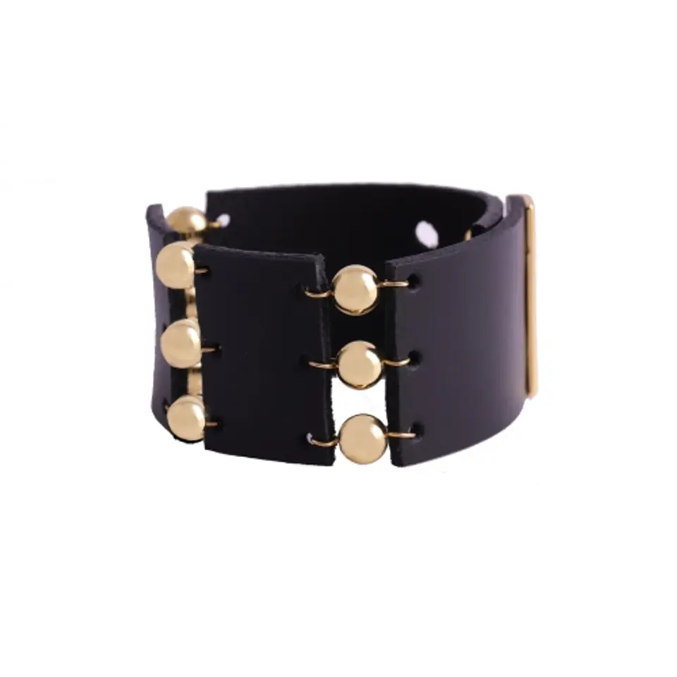 Bransoletka skórzana z kulkami. Regulacja zapięcia na 18 cm oraz między 19 cm a 20 cm.