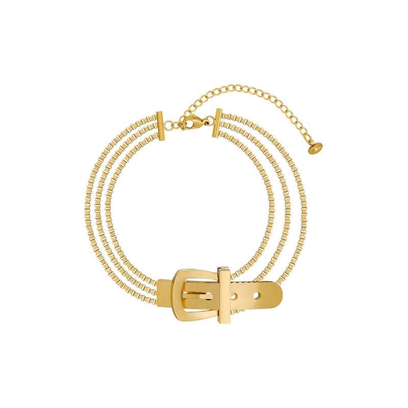 Modna bransoletka ze stali nierdzewnej platerowanej 14 karatowym złotem Świetnie pasuje do eleganckich, jak również do codziennych stylizacjiElegancki dodatek na każdą okazję, do sukienek, swetrów i bluzekWymiary:- obwód - 17 cm + 5 cm regulacji STAL CHIRURGICZNA jest odporna na warunki atmosferyczne, nie ulega korozji, nie rdzewieje, nie śniedzieje.