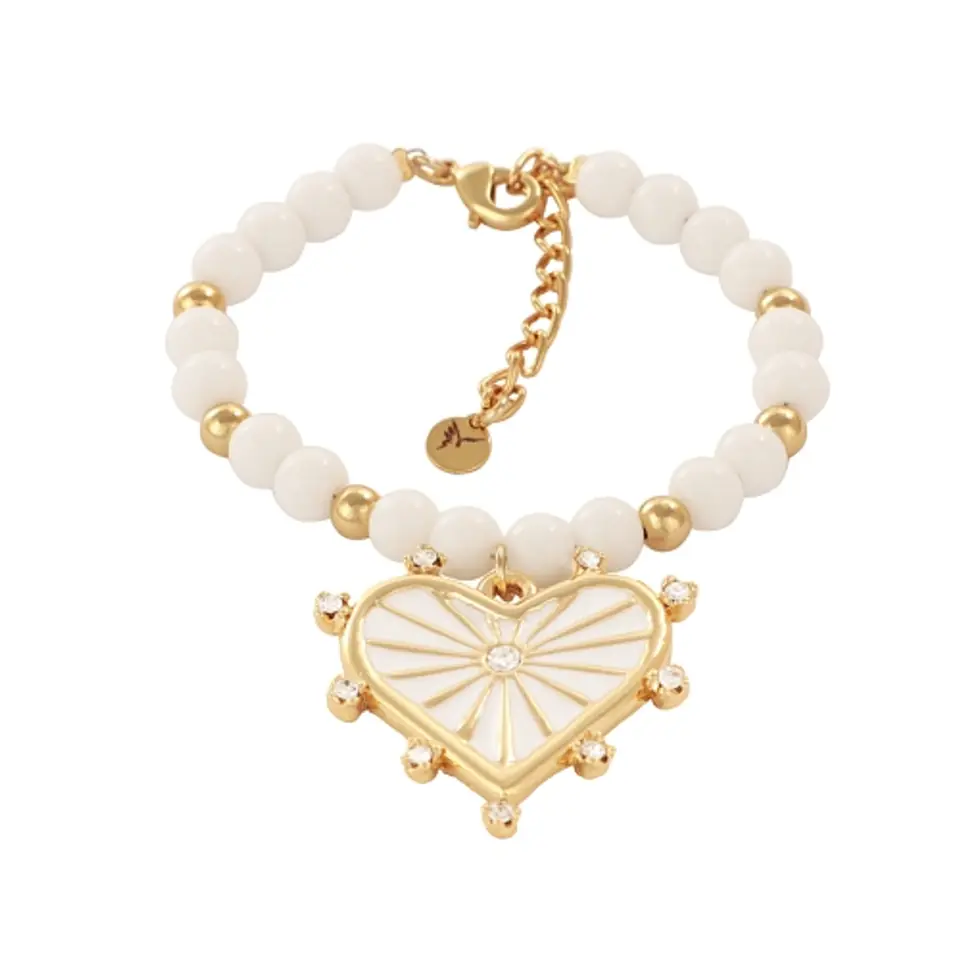 Bransoletka Sviatlana by Colibra z agatów i złotych kulek z ręcznie malowanym sercem ozdobionym kryształkami Preciosa. Długość bransoletki 17 cm + 4 cm przedłużka.