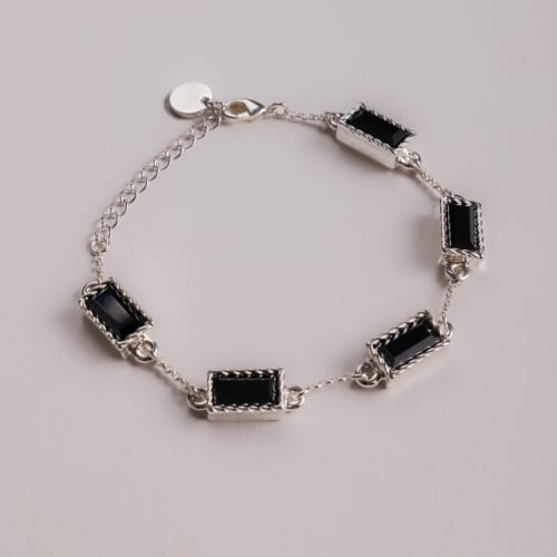 BRANSOLETKA Z CZARNĄ CYRKONIĄ POSREBRZANA LUMINOIR B25/VIC/01AG