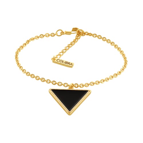 Bransoletka z trójkątną zawieszką to subtelny dodatek o nowoczesnym charakterze. Delikatny złoty łańcuszek ozdobiony geometrycznym detalem z czarną emalią tworzy elegancką i ponadczasową kompozycję, która przyciąga uwagę prostotą i klasą. Idealna do noszenia na co dzień – solo albo w połączeniu z innymi bransoletkami, doda wyrafinowania każdej stylizacji. Długość bransoletki: 17 cm + 4 cm przedłużki