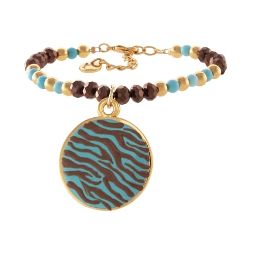 Bransoletka z czekoladowych koralików, turkusów i złotych kuleczek z zawieszką w zeberkę B25/LAT/155AU