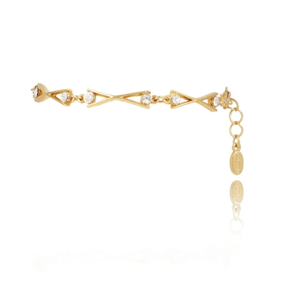 Nowoczesna bransoletka z kryształkami Swarovskiego. Długość 16cm + 4cm, szerokość 0,5cm. Bransoletka pozłacana.