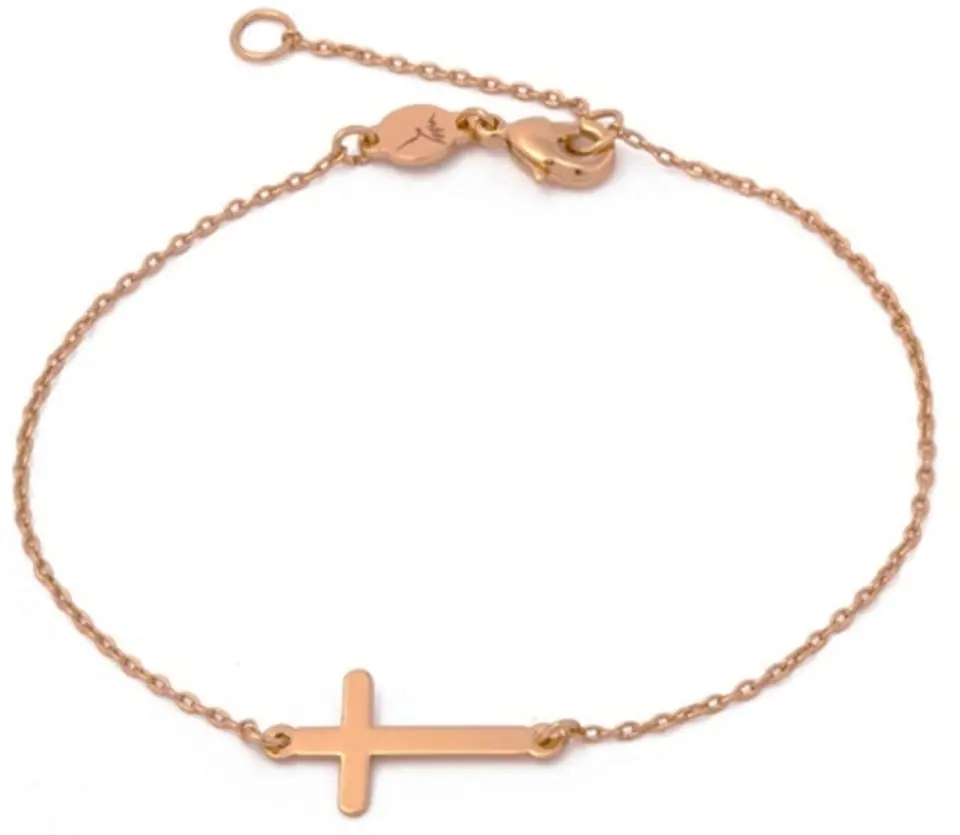 Bransoletka z krzyżem bez wątpienia nada charakteru każdej stylizacji. Długość bransoletki 18cm + 3cm przedłużki. Bransoletka pozłacana.