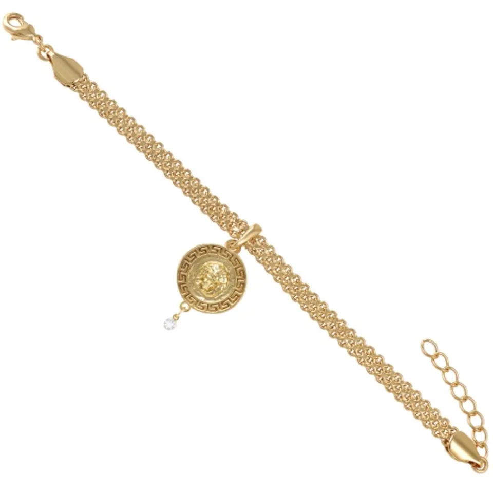 Pozłacana bransoletka bismark Colibra by Sviatlana z kolekcji OLIMPIA, z grecką monetą z kryształkiem . Długość 17 cm + 4 cm, średnica monetki 1,5 cm.