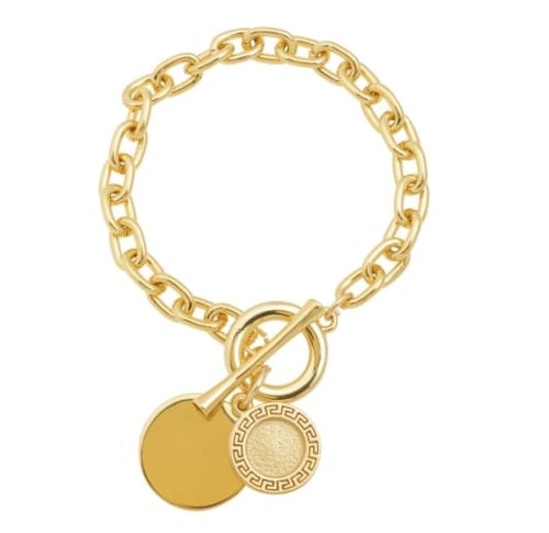 Długość bransoletki wynosi 18cm. Średnica blaszki wynosi 2,9cm. Bransoletka pozłacana.