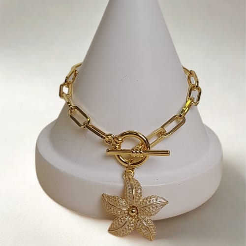 Delikatna, kobieca bransoletka z uroczą zawieszką w kształcie perłowego kwiatu to idealny dodatek dla miłośniczek subtelnej elegancji. Lśniący kwiat odbija światło w piękny, naturalny sposób, dodając nadgarstkowi lekkości i wdzięku. Doskonała zarówno na co dzień, jak i na specjalne okazje – od romantycznych randek po letnie przyjęcia.