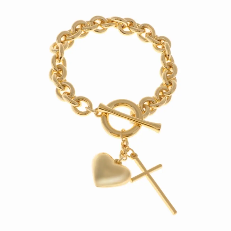 Bransoletka to doskonały pomysł na prezent oraz idealne uzupełnienie każdej stylizacji. Bransoletka z sercem i krzyżem. Bransoletka pozłacana.