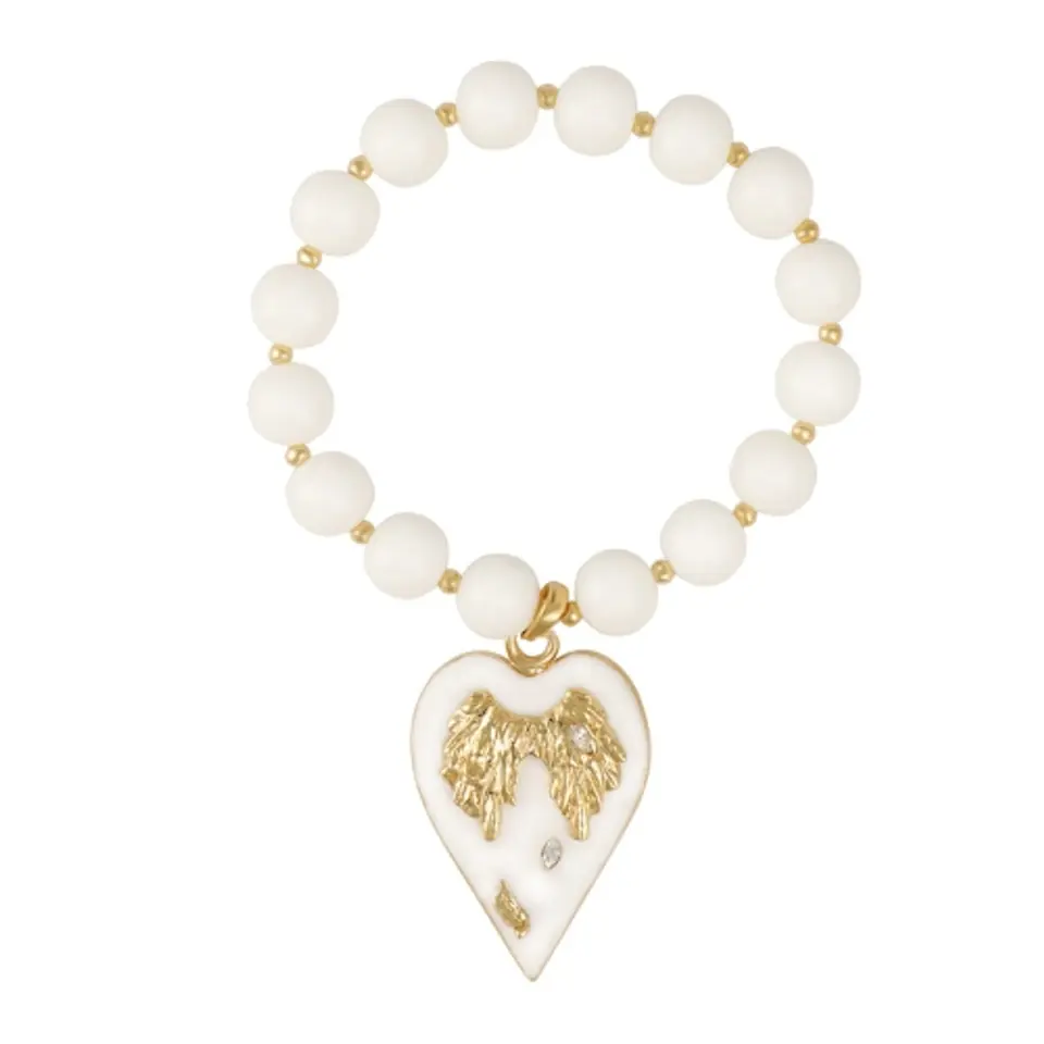 Pozłacana bransoletka z agatów Colibra by Sviatlana z kolekcji ANGEL, ze skrzydłami w ręcznie malowanym na biało sercu, zdobionymi kryształkami Preciosa.
