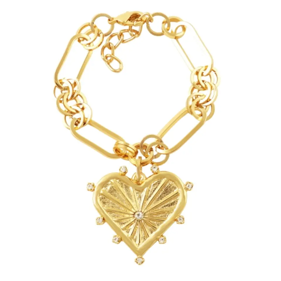 Pozłacana bransoletka Colibra by Sviatlana z kolekcji BELLA, z sercem, zdobionym kryształkami Preciosa. Długość 18 cm + 4 cm przedłużki. Wielkość serduszka 3,5 cm/3,5 cm.