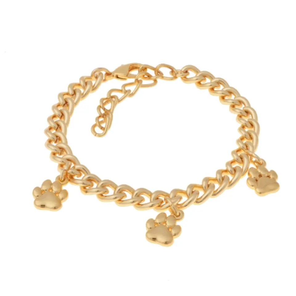 Urocza bransoletka na grubym łańcuszku z trzema zawieszkami w kształcie łapek. Regulowana długość.