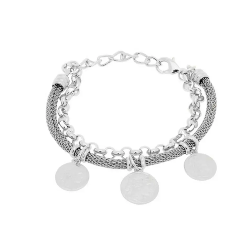 Bransoletka to doskonały pomysł na prezent oraz idealne uzupełnienie każdej stylizacji. Bransoletka o długości 18cm + 5cm przedłużka z trzema monetami. Bransoletka posrebrzana. Bransoletka posrebrzana.