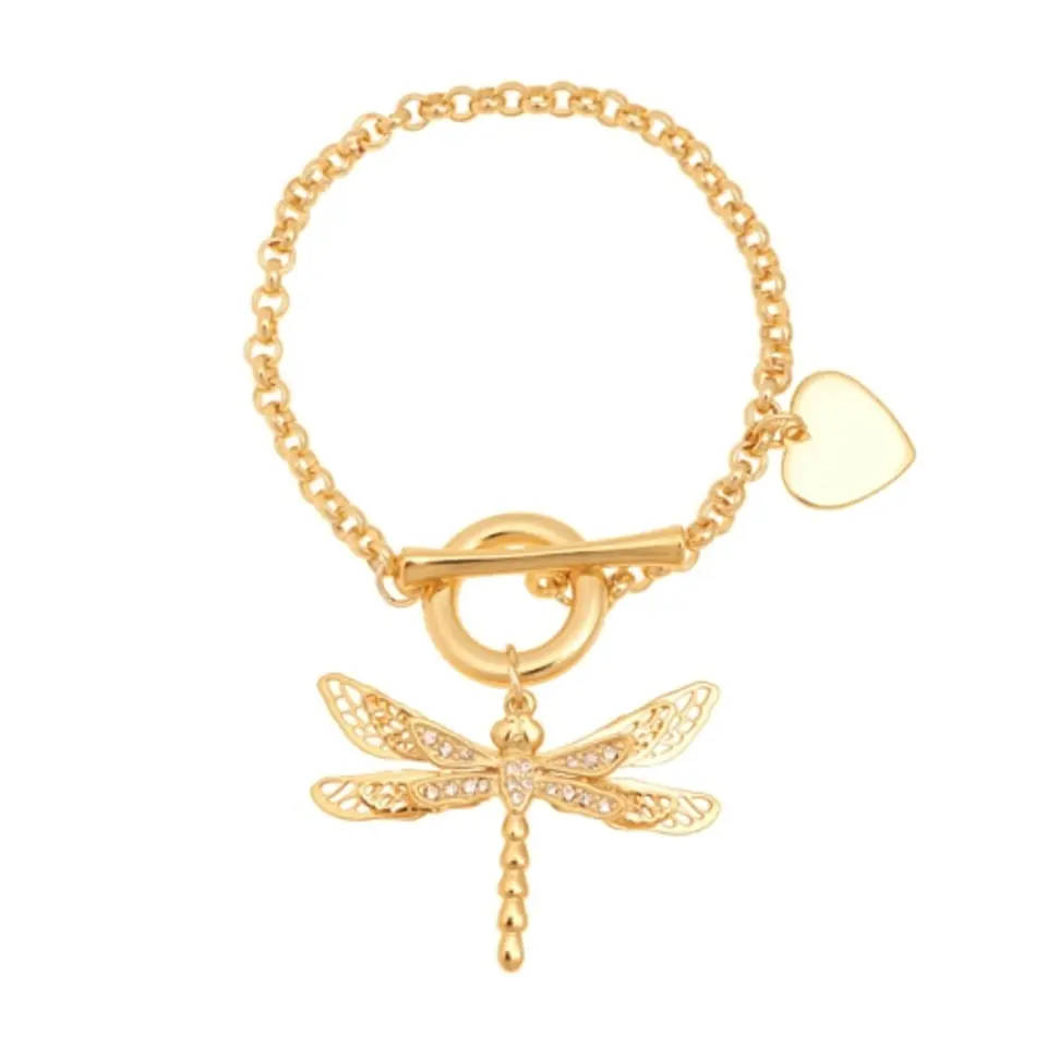 Bransoletka to idealny pomysł na prezent a także doskonały dodatek do wielu stylizacji. Bransoletka z ważką i serduszkiem. Bransoletka pozłacana o długości 20 cm.
