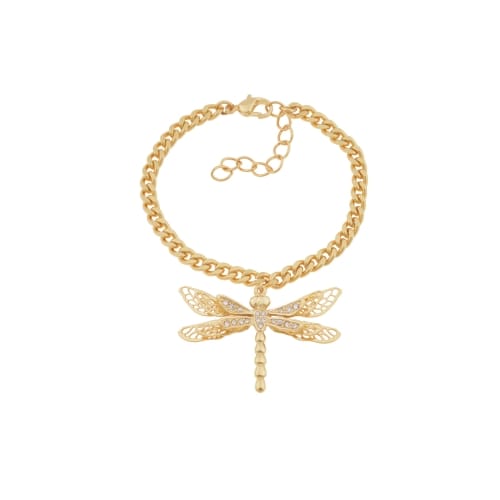 Bransoletka o długości 18 cm z przedłużką 4 cm. Zawieszka ważka z kryształami.