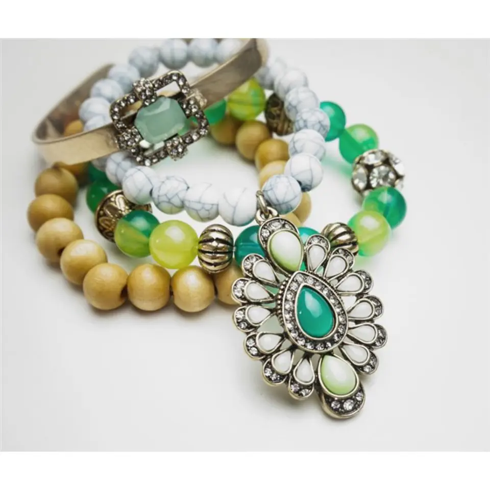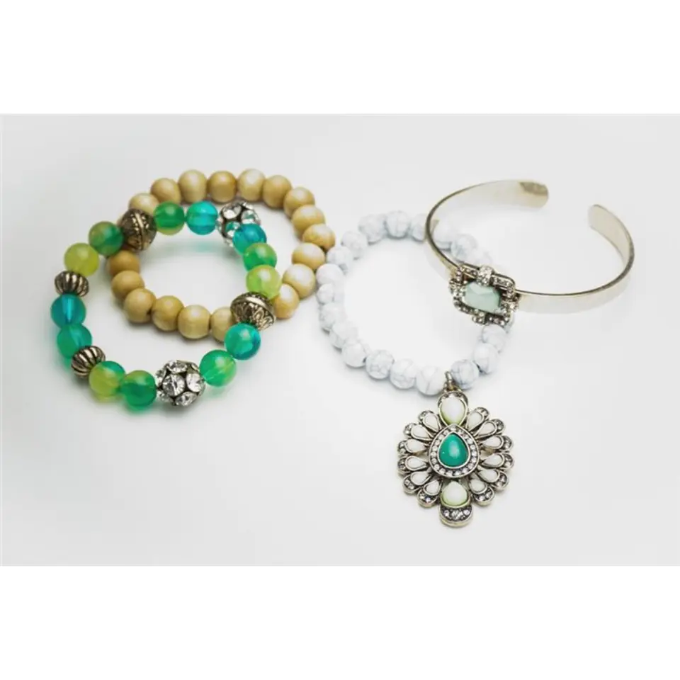 Eleganckie, kolorowe bransoletki na rękę z elementami ozdobnymi.W naszych bransoletkach każda kobieta będzie wyglądać wyjątkowo!Wymiary:długość ok. 21,5 cmozdoba 3 x 4,4 cm
