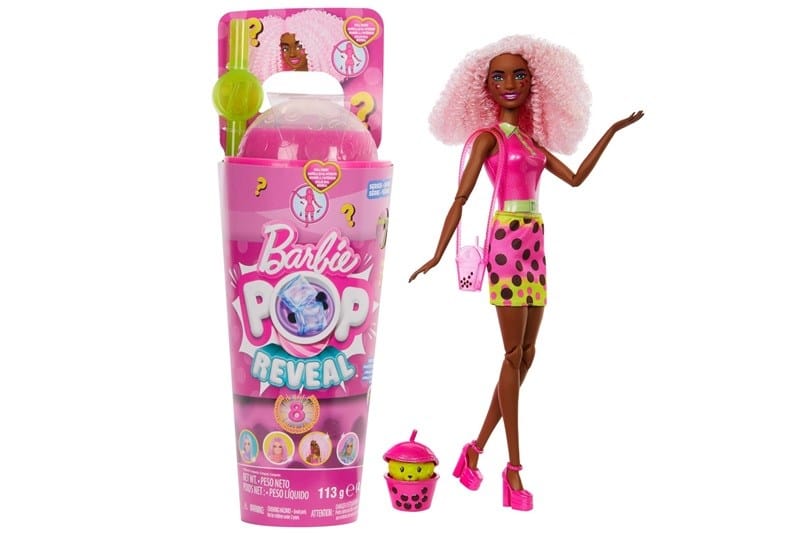 Lalki Pop Reveal z serii Bubble Tea zapewniają fantastyczną sensoryczną zabawę w odkrywanie ośmiu niespodzianek! Odkręć wieczko ze slimem i przebij wierzchnią warstwę słomką, aby pobawić się elastyczną masą. Ściągnij plastikową warstwę z kubka, aby odsłonić pachnącą lalkę Barbie(R) i osiem niespodzianek! Jak wygląda Twoja lalka? W serii jest lalka z motywem mleka taro, jagód, zielonej herbaty i mango. Rozpakowuj dalej, aby odkryć dwie kostki lodu skrywające spódniczkę i parę bucików. Kostki lodu możesz wykorzystywać wielokrotnie. W torebkach-niespodziankach są słomka, torebka i pachnące mięciutkie zwierzątko! Zachwyć się zmianą koloru na twarzy lalki Barbie(R). Dzieci będą chciały zebrać je wszystkie! Sprzedawane oddzielnie, zależnie od dostępności. Lalki nie stoją samodzielnie. Kolory i elementy dekoracyjne mogą się różnić.