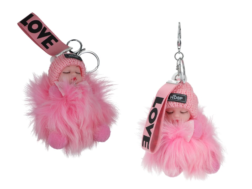 Breloczek do kluczy - Niemowlak, jasno różowy pompon