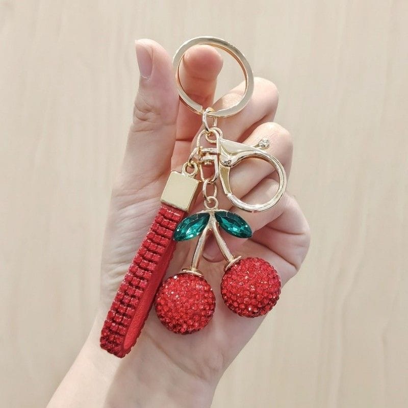 Brelok do kluczy czerwone WISIENKI z CYRKONIAMI złoty BRL365