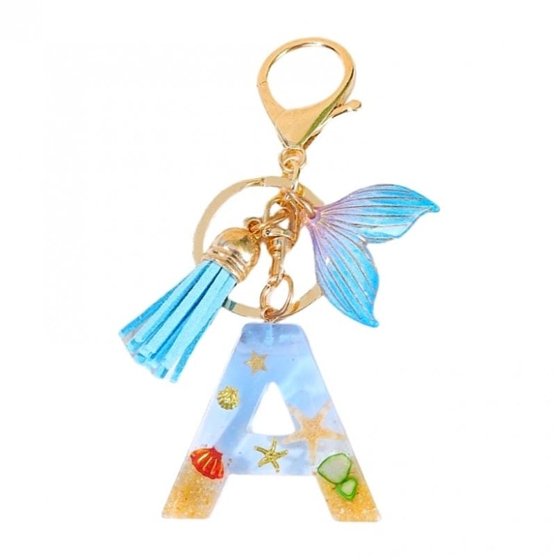 Brelok do kluczy LITERKA "A" , MORSKI, ogon syreny, muszelki, frędzle BRL353A