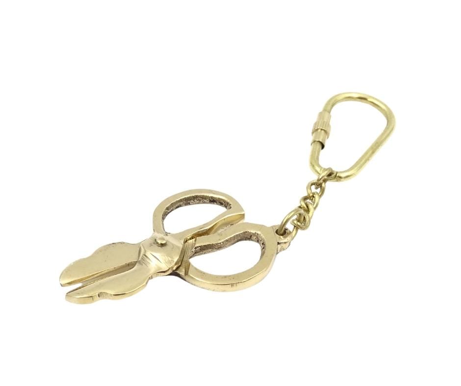 Brelok do kluczy Nożyczki KRT7 - prezent dla fryzjera i dla krawcowej Kolor - złoty Materiał - mosiądz ·Wymiary: ·Wysokość breloka - 5 cm ·Szerokość breloka - 3,5 cm ·Długość całkowita - 12 cm