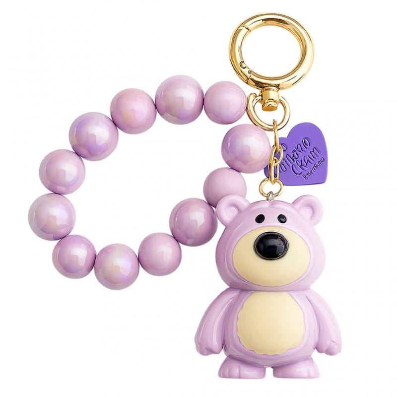 Brelok do kluczy, perłowy Miś z koralikami Fioletowy BRL366FIO