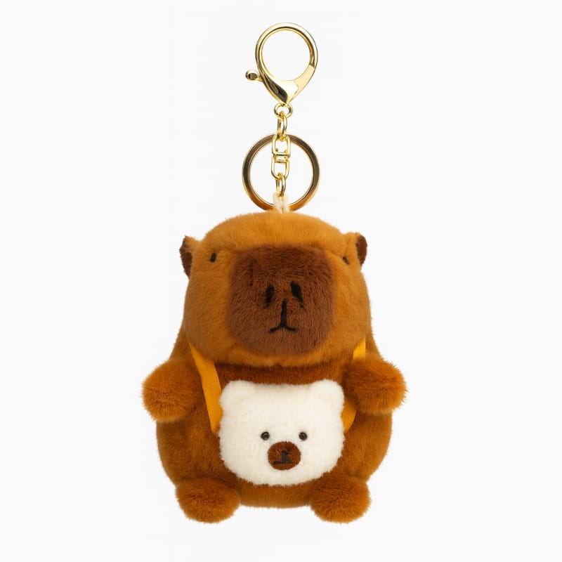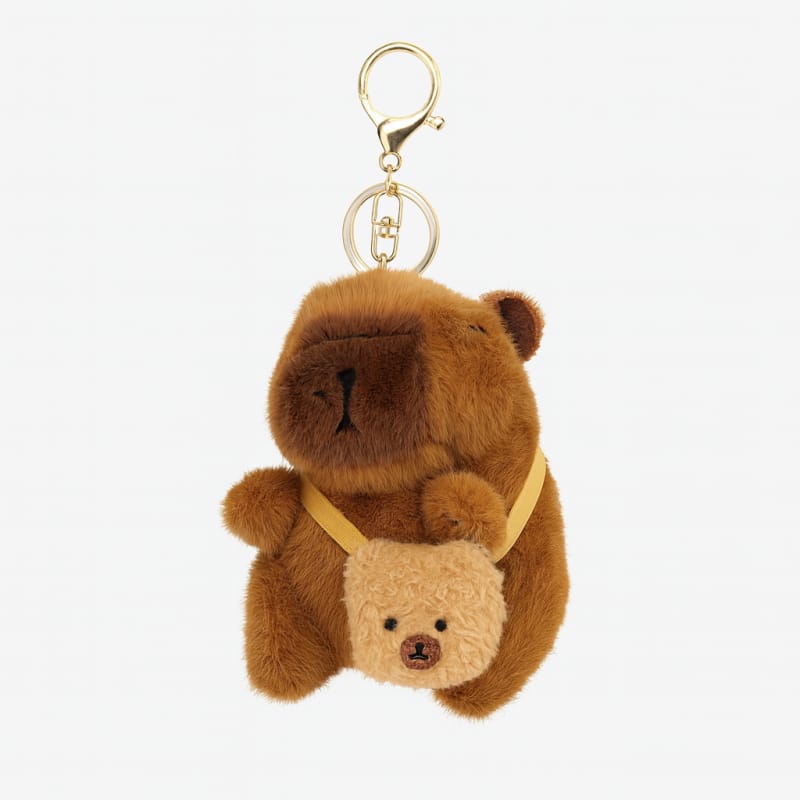 Brelok do kluczy pluszowa piszcząca Kapibara z torebką, LOSOWY KOLOR BRL387