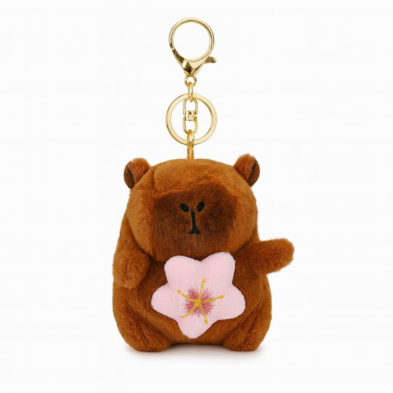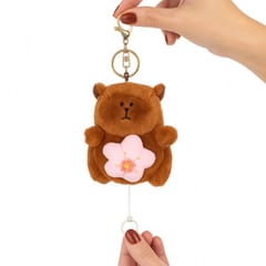 Brelok do kluczy pluszowa puchata Kapibara z obrotowym kwiatkiem BRL385R