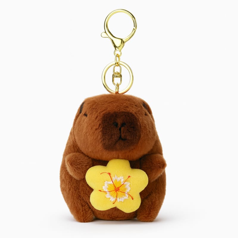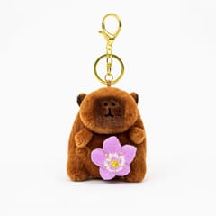 Brelok do kluczy pluszowa puchata Kapibara z obrotowym kwiatkiem, LOSOWY KOLOR BRL385