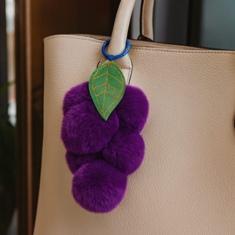 Brelok do kluczy puchate winogrono, pompony fiolet BRL351