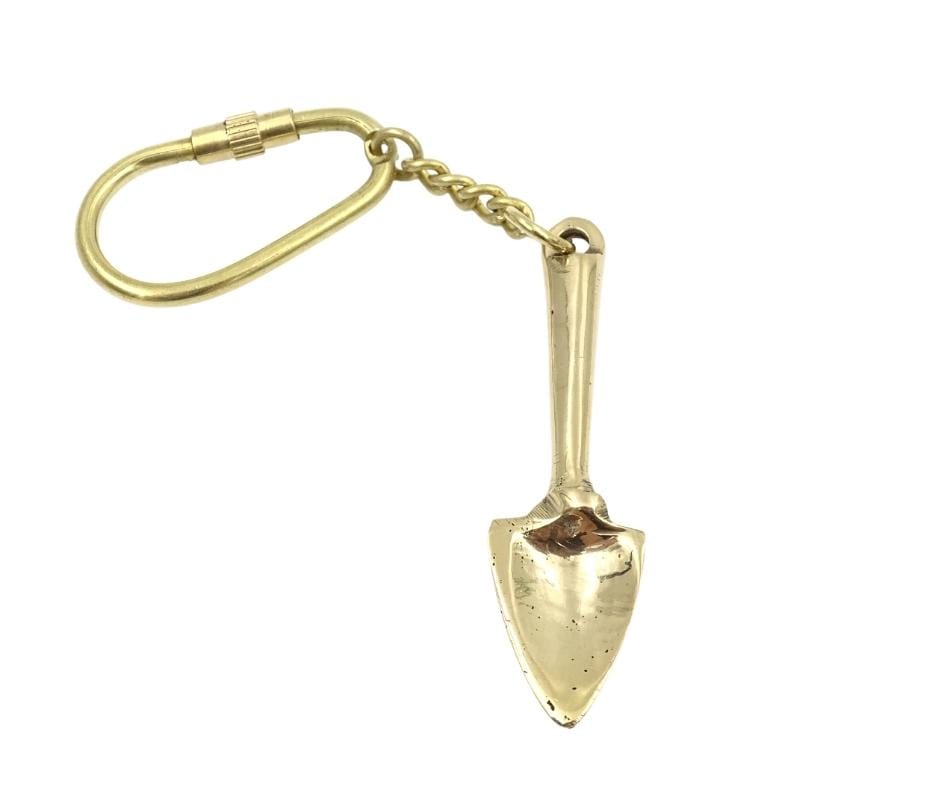 Brelok do kluczy Szpadel KRT28 Kolor - mosiężny Materiał - mosiądz Wymiary: ·Długość breloka - 5,8 cm ·Szerokość breloka - 1,5 cm ·Długość całkowita - 12 cm
