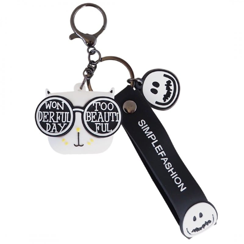 Brelok do kluczy WONDERFUL DAY Kot w okularach biały 5,2 x 4,5 cm BRL331B