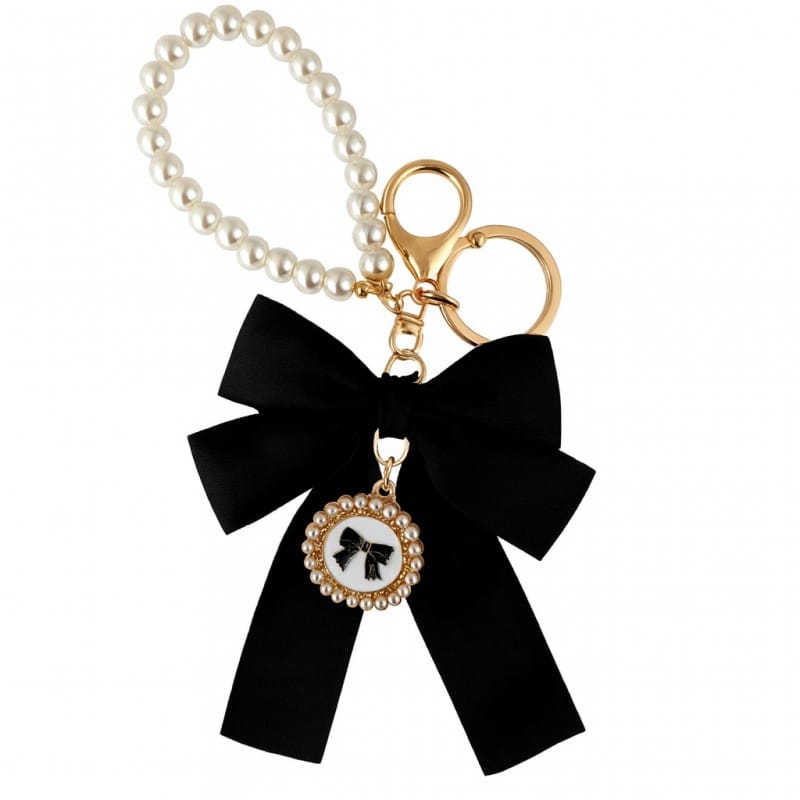 Brelok do kluczy z czarną KOKARDĄ i perłami BRL362CZ