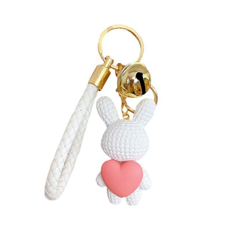 Brelok do kluczy z dzwoneczkiem KRÓLIK SWEET z SERCEM biały BRL360