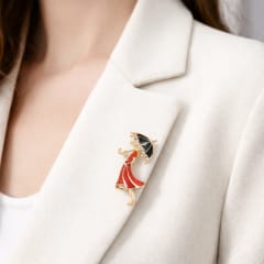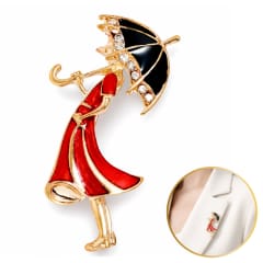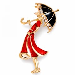 Broszka ozdobna delikatna, Kobieta w czerwonej sukience z parasolką BZ237