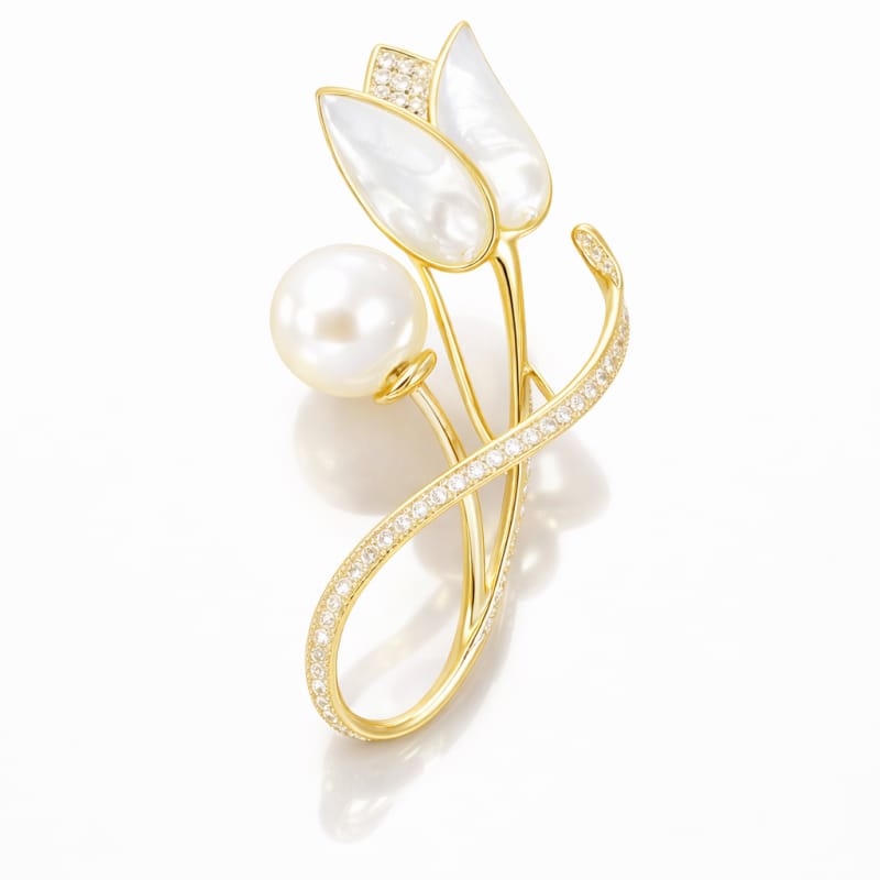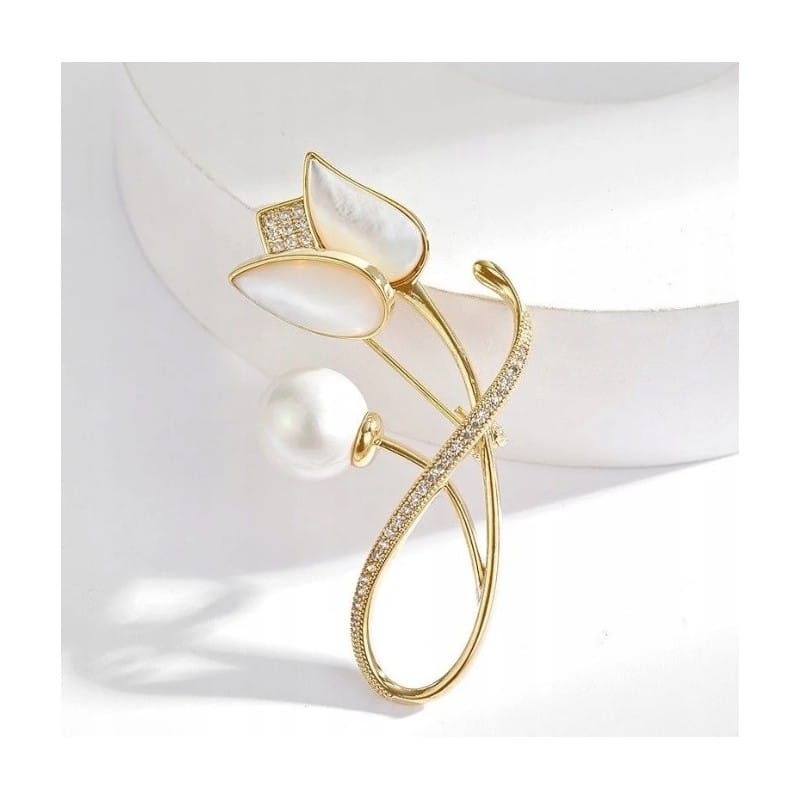 Broszka ozdobna - elegancki złoty TULIPAN BZ229