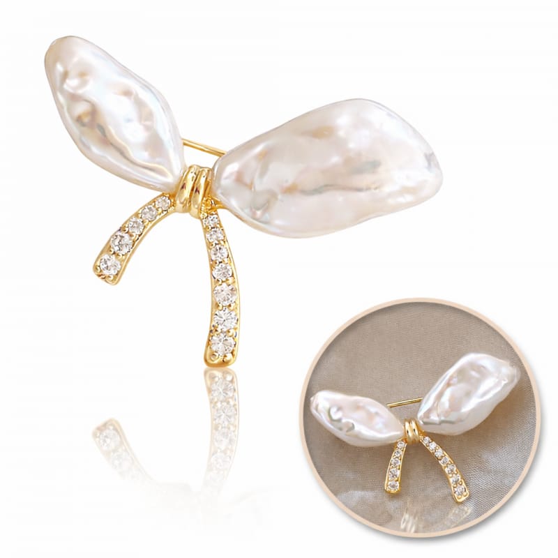 Broszka ozdobna - kokarda perły z cyrkoniami BZ213