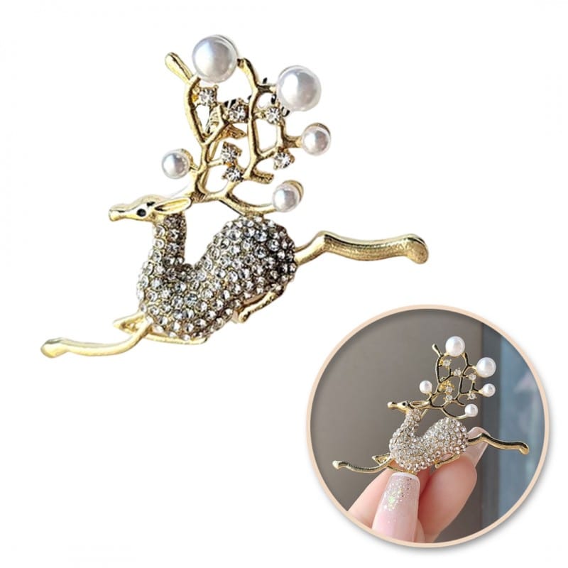 Broszka ozdobna kryształki BIAŁY JELONEK BZ178