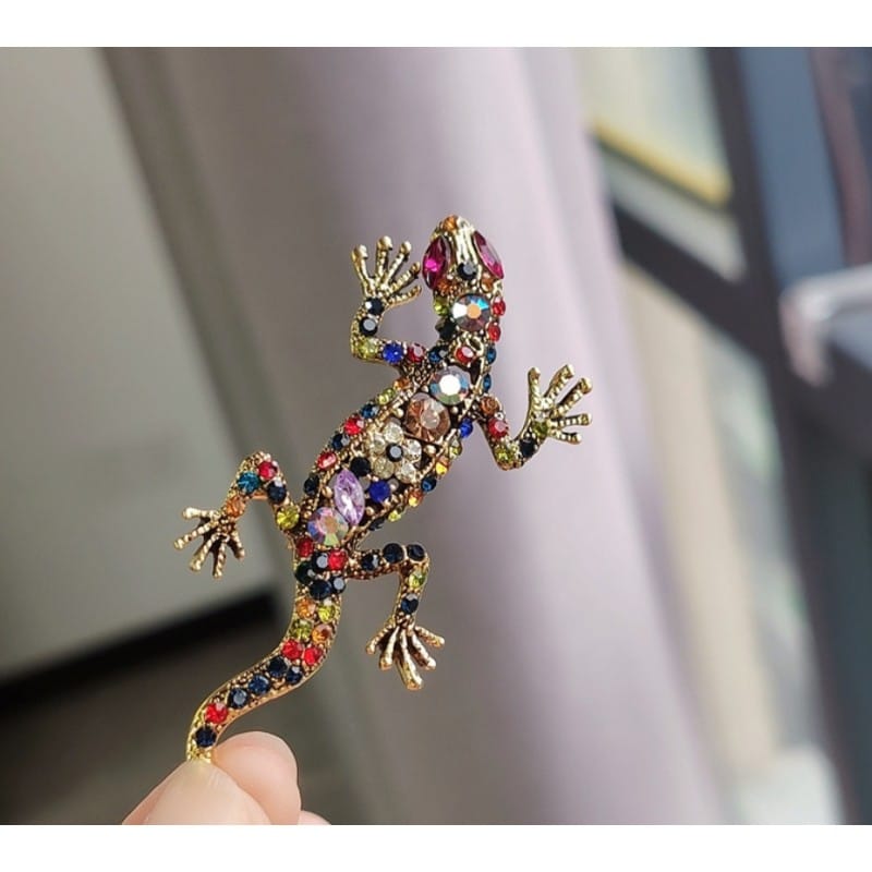 Broszka ozdobna kryształki KAMELEON KOLOROWY BZ167