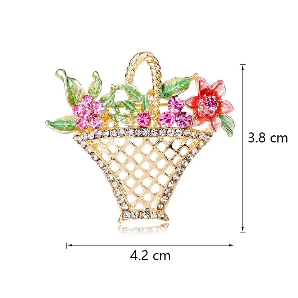 Broszka ozdobna Kryształowy Koszyczek z Kwiatami BZ137
