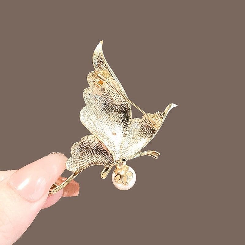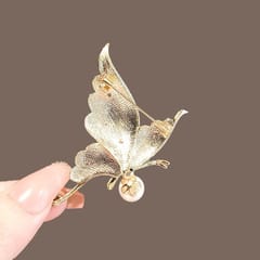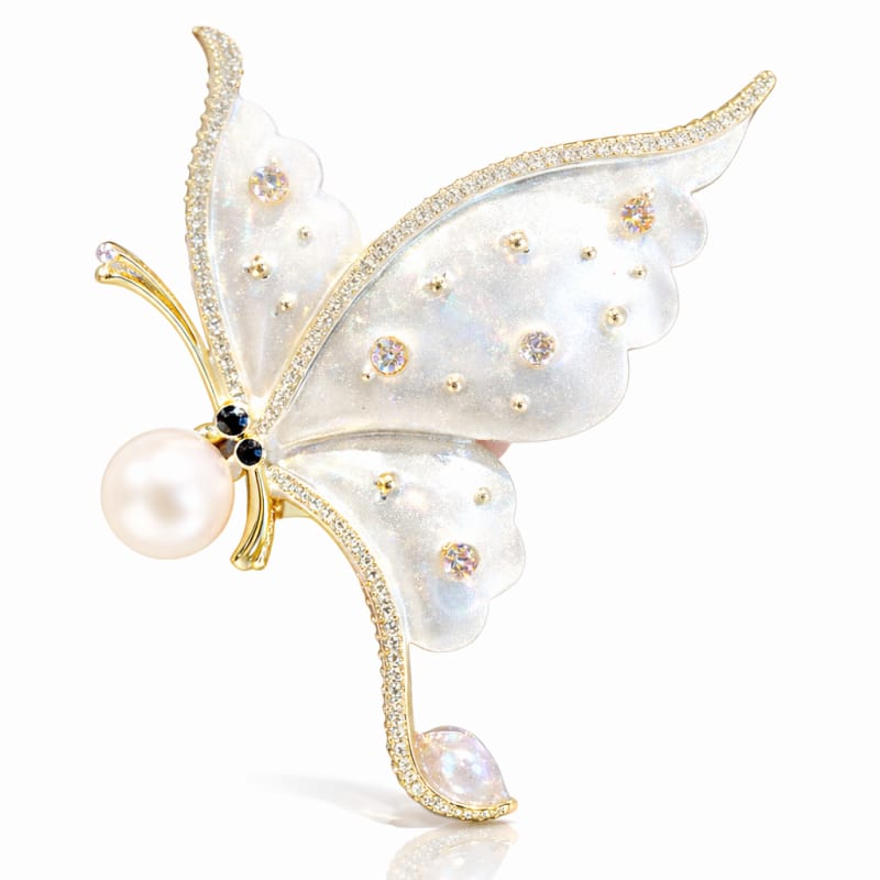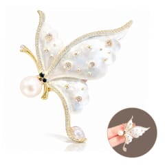 Broszka ozdobna - MOTYL z perłą, biała masa perłowa z cyrkoniami BZ227