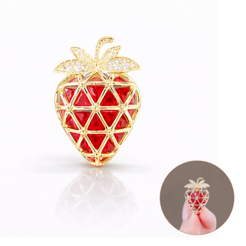 Broszka ozdobna - złota delikatna TRUSKAWKA BZ236