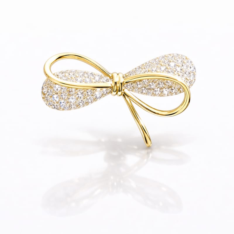 Broszka ozdobna - złota KOKARDA, cyrkonie BZ234