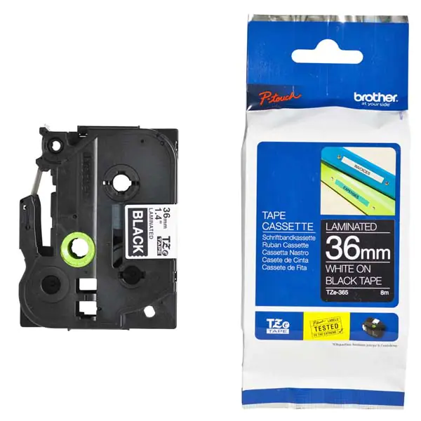 Brother oryginalny taśma do drukarek etykiet, Brother, TZE-365, biały druk/czarny podkład, laminowane, 8m, 36mm