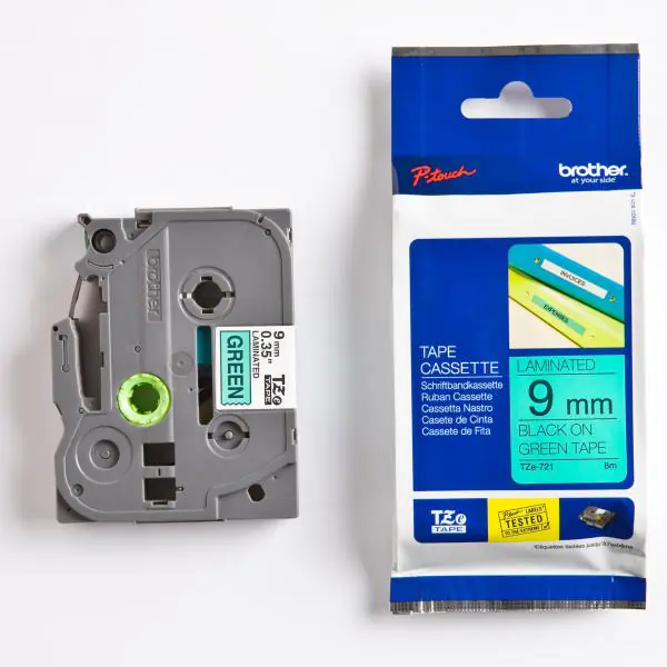 Brother oryginalny taśma do drukarek etykiet, Brother, TZE-721, czarny druk/zielony podkład, laminowane, 8m, 9mm