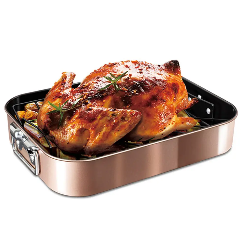 Brytfanna firmy BERLINGER HAUS z serii ROSE GOLD METALLIC LINE z powłoką nieprzywierającą i rusztem do pieczenia piętrowego