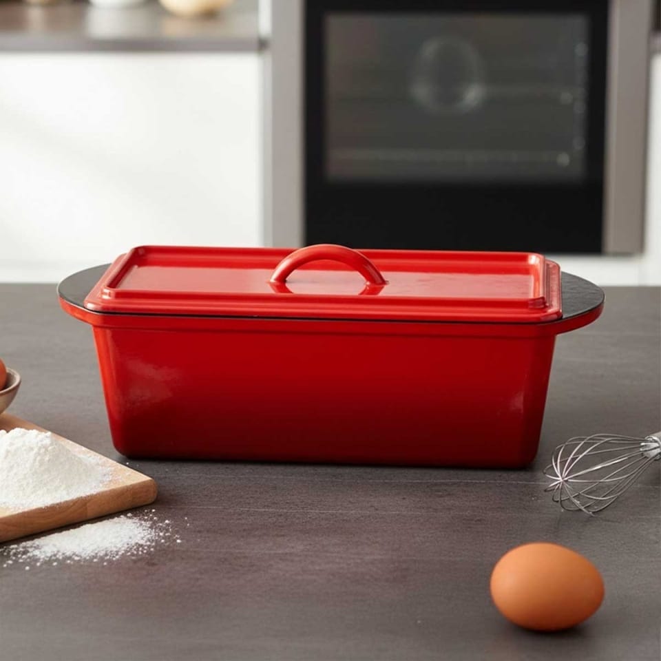 Prostokątna forma z pokrywką do pieczenia chleba, chleba tostowego, ciast, keksu, zapiekanek, mięsa lub pasztetu. Wykonana z żeliwa z powłoką emaliowaną.