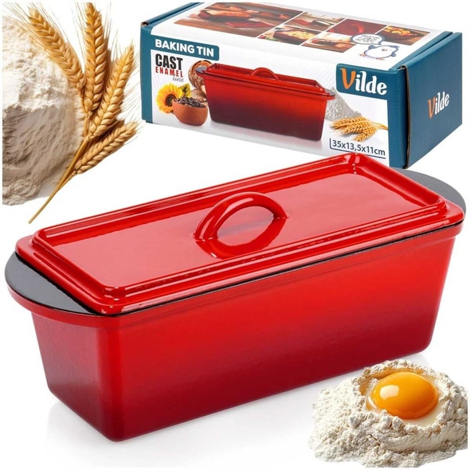 Prostokątna forma do pieczenia chleba oraz innych potraw. Prostokątny kształt, jest idealny do wypieku chleba tostowego, pasztetu, babki czy keksu. Solidnie wykonana, odpowiednio użytkowana będzie służyła długie lata. Dzięki właściwościom żeliwa równomiernie rozprowadza ciepło, co pozwala uzyskać doskonałe rezultaty pieczenia i zachować pełnię smaku przygotowywanych potraw. Oryginalny produkt marki Vilde z linii Cast Enamel. Wyprodukowano zgodnie z europejskimi standardami.