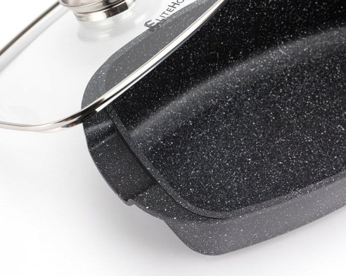 - Nieprzywieralna marmurowa powłoka umożliwiająca zdrowe gotowanie- Doskonale utrzymuje ciepło, dzięki czemu gotowanie jest energooszczędne - Nieprzywieralne wnętrze zapewnia szybkie i równomierne rozprowadzanie ciepła- Pokrywa ze szkła hartowanego z uchwytem na przyprawy w płynie (dozownik Aroma Knob) ze stali nierdzewnej- Bardzo mocny, nieodkształcający się spód- Można myć w zmywarce.- Pojemność: 6.5 L- Rozmiar: 30 x 17 x 11 cm