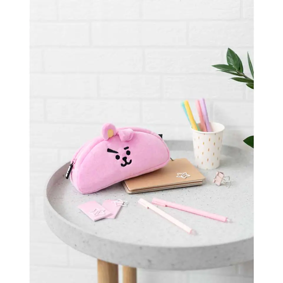 Pluszowy piórnik z motywem Line Friends BT21 Cooky. Sprawdzi się do przechowywania przyborów szkolnych, takich jak kredki, ołówki, długopisy, linijki czy nożyczki. Wykonany z poliestru, posiada zapięcie na zamek błyskawiczny. Wymiary: 20 x 9 x 5 cm.