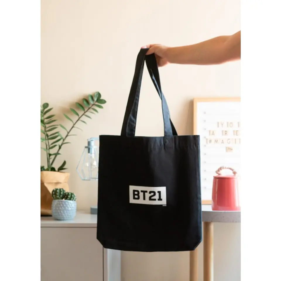 Tkaninowa torba BT21 wykonana z wysokiej jakości materiału posiada długie rączki, które pozwalają na noszenie torby na ramieniu. Idealna na zakupy, w podróży czy do pracy.Torba wielokrotnego użytku, dzięki składanej konstrukcji można ją zawsze mieć przy sobie i schować do torebki lub plecaka i może być używana przez długi czas.Cechy produktu:· Długie rączki pozwalają na noszenie na ramieniu· Wykonana w 80% z bawełny i w 20% z poliestru pochodzących z recyklingu· Wymiary: 28x40x12 cm· Oficjalna licencja producenta